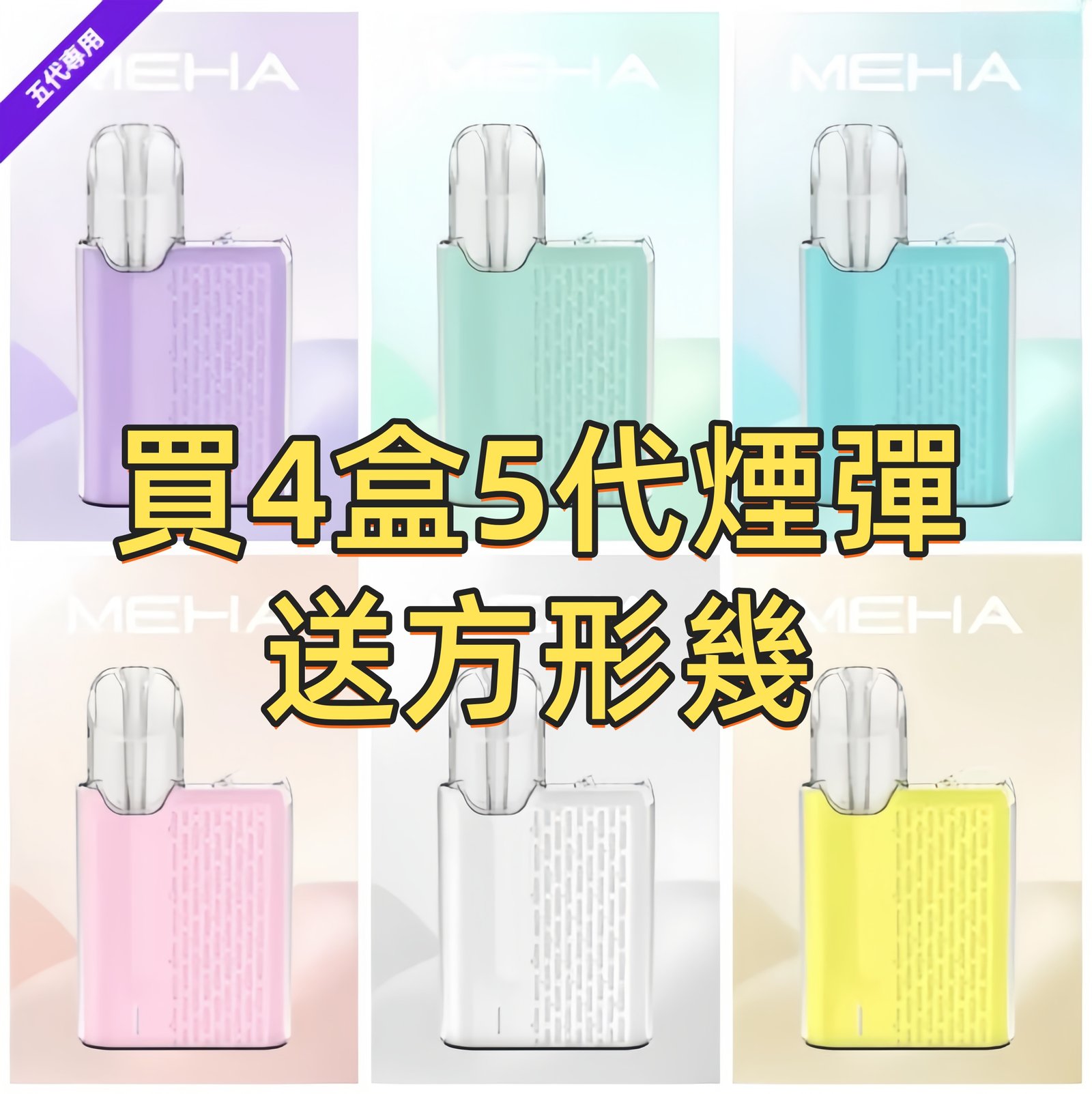 MEHA五代電子菸主機,搭載450mAh電池、三檔功率調整(7W/8.5W/10.5W)、炫彩氛圍燈、童鎖保護、電量顯示及馬達震動,完美兼容五代電子煙煙彈